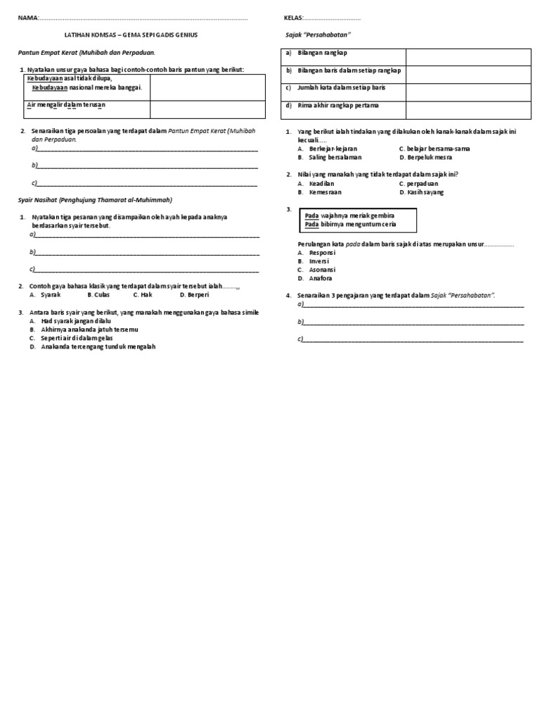 Latihan Komsas