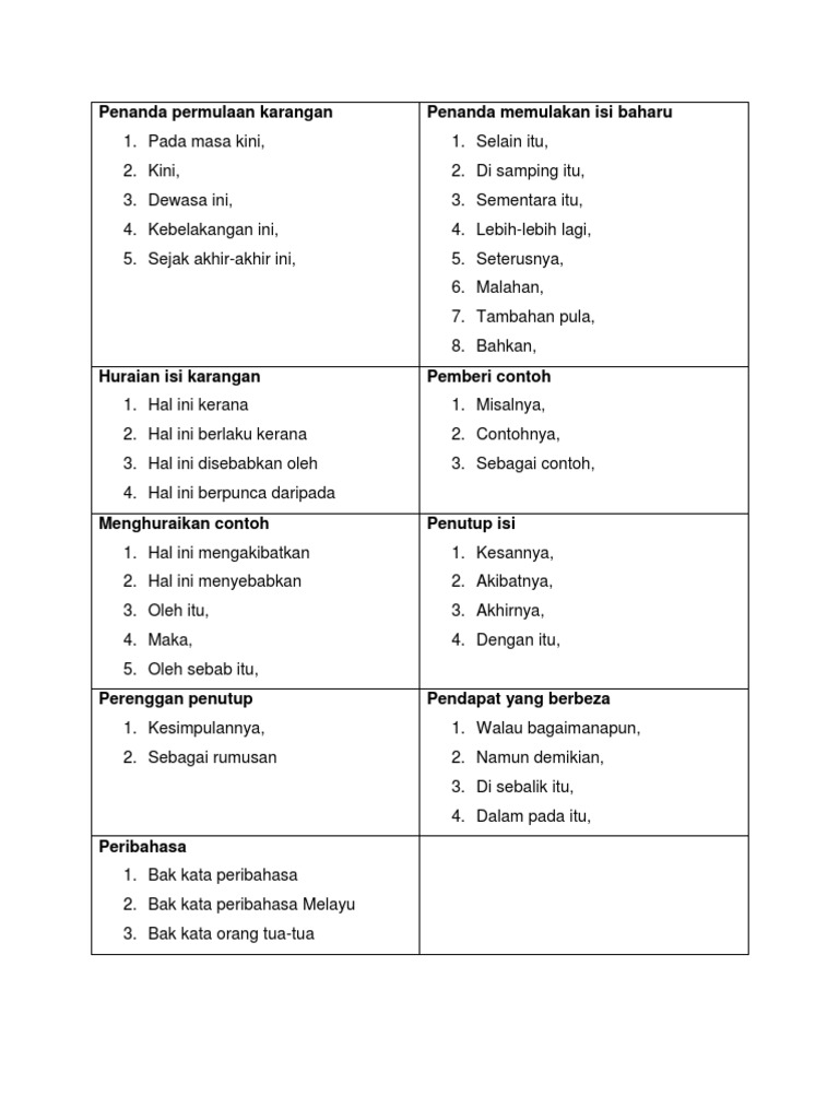 Contoh Penanda Wacana Bahasa Melayu