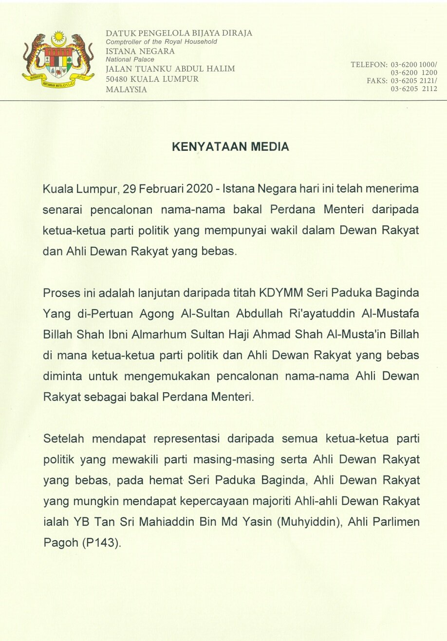 Aidila Razak On Twitter Breaking Istana Muhyiddin Yassin Will Be The New Pm Swearing In Ceremony Tomorrow At 10 30am