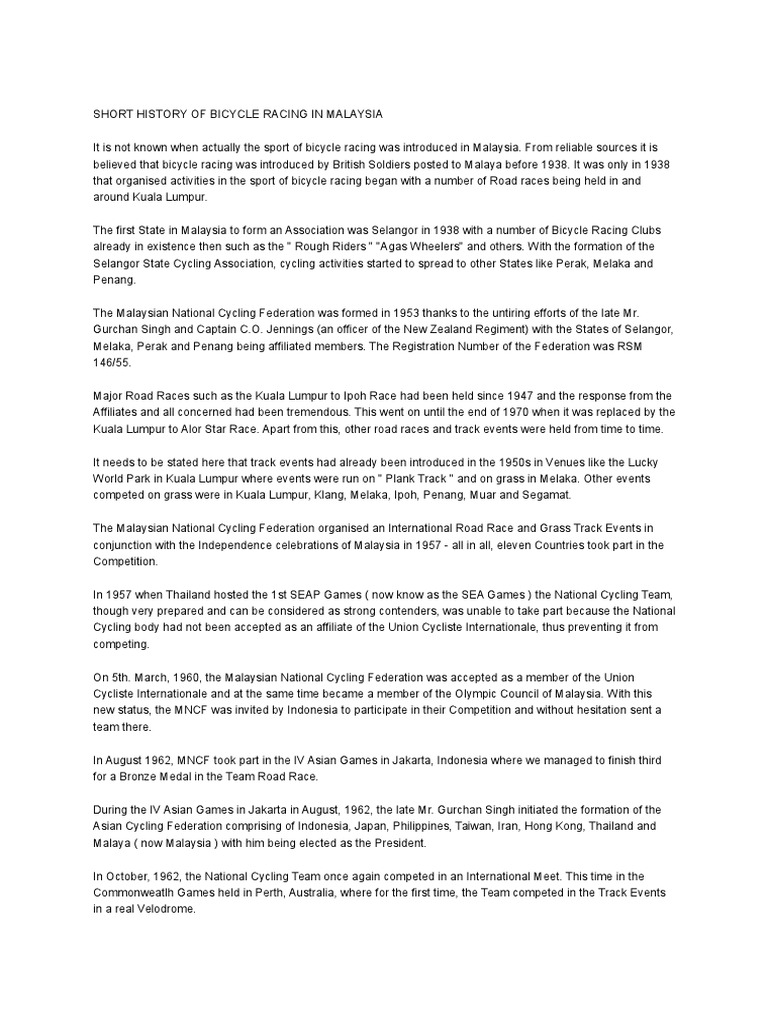 Short History Of Bicycle Racing In Malaysia Malaysia Sports