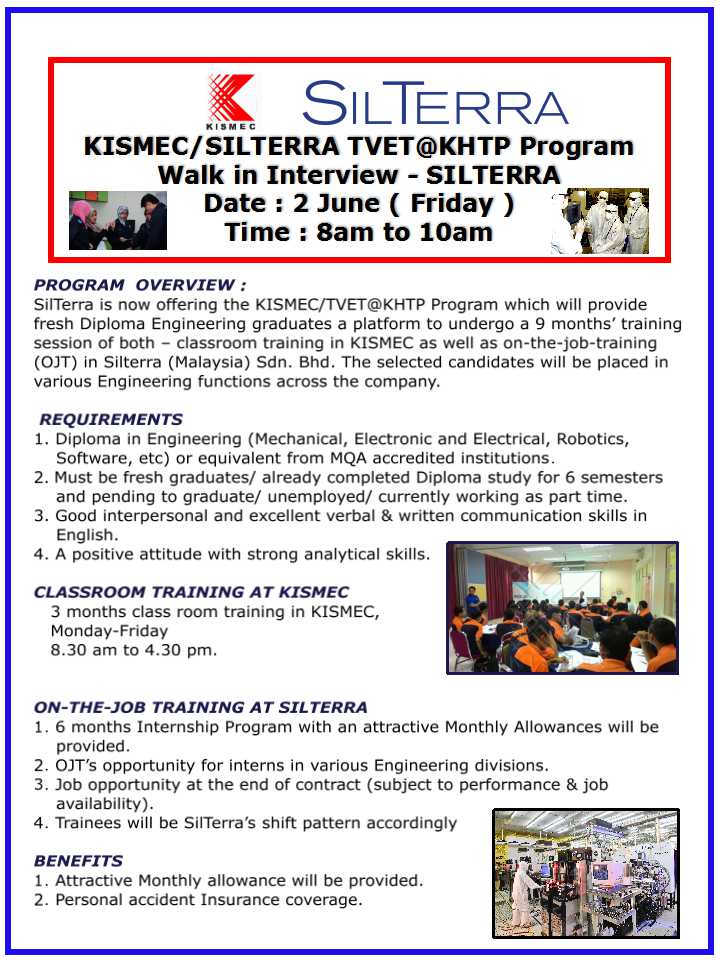 Silterra Malaysia On Twitter Career Opportunity Silterra Is Inviting Interested And Eligible Candidates To Come To Our Walk In Interview At Silterra Malaysia Kulim Hi Tech Park Kulim Kedah Kindly Refer To The Poster Below