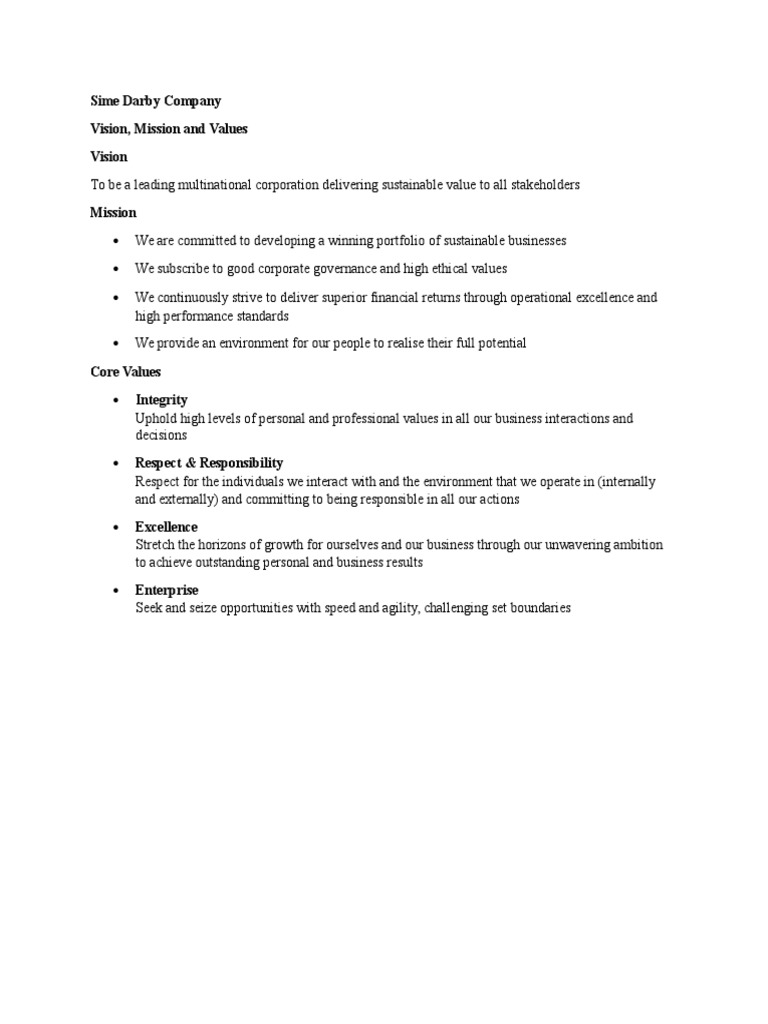 Sime Darby Nurul Afiqah Binti A Rahman Bc6bsime Darby Basically Clear Vision Provides The Foundation For Developing A Comprehensive Mission Statement Course Hero