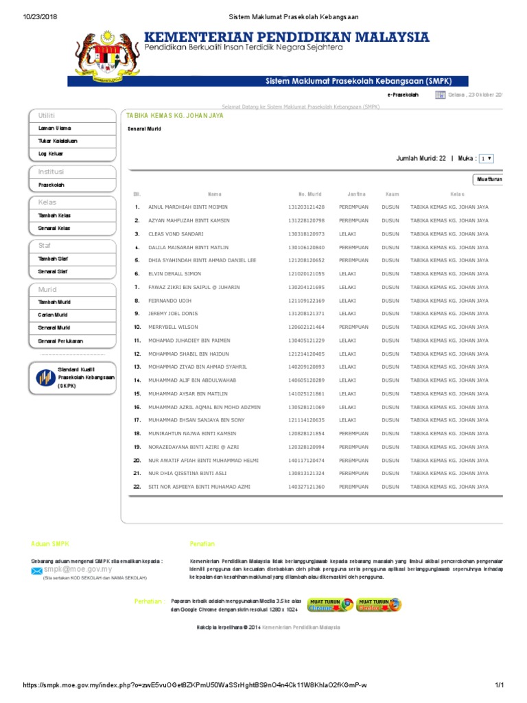 Sistem Maklumat Prasekolah Kebangsaan Skjmt Pdf Document