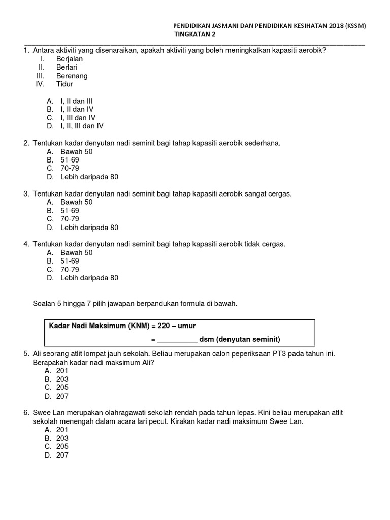 Contoh Soalan Pentaksiran Pendidikan Jasmani Dan Pendidikan Kesihatan Tahun 2 Pdf Document