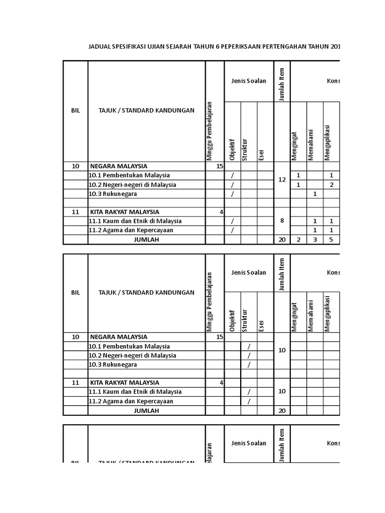 Jsu Sejarah Tahun 6 2016 Ppt Xlsx