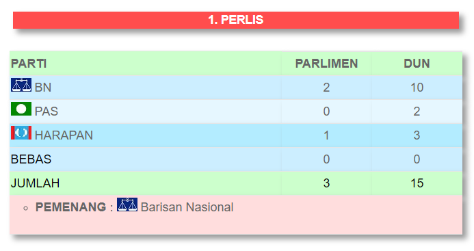 Keputusan Rasmi Pru14 Kerusi Parlimen Dan Kerusi Dun