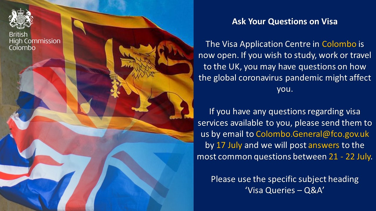Uk In Sri Lanka On Twitter Reminder If You Have Any Questions Regarding Visa Services In Srilanka And The Uk We Are Having A Q A Please Send In Your Questions To Colombo General Fco Gov Uk