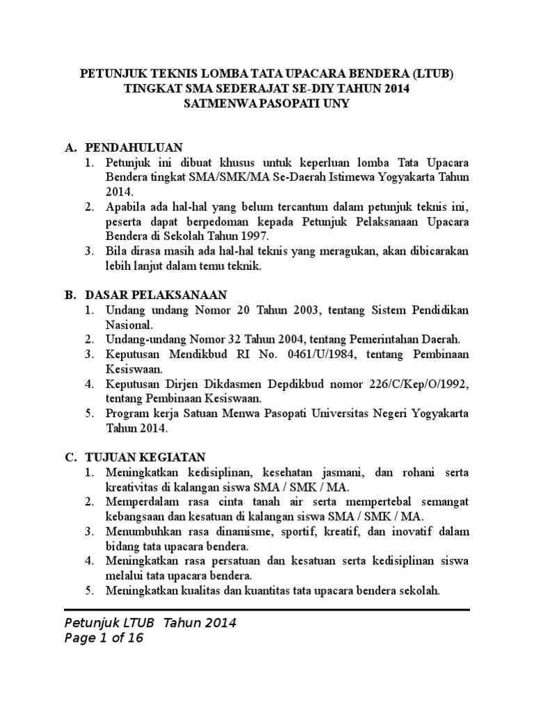 Doc Petunjuk Teknis Lomba Tata Upacara Bendera Ltub Tingkat Sma Sederajat Se Kota Baubau Tahun 2017 Fin Fithran Academia Edu