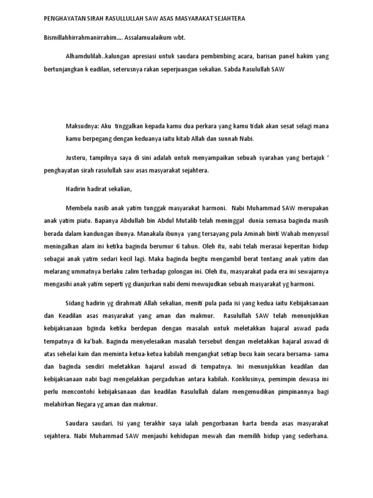 Penghayatan Sirah Rasullullah Saw Asas Masyarakat Sejahtera