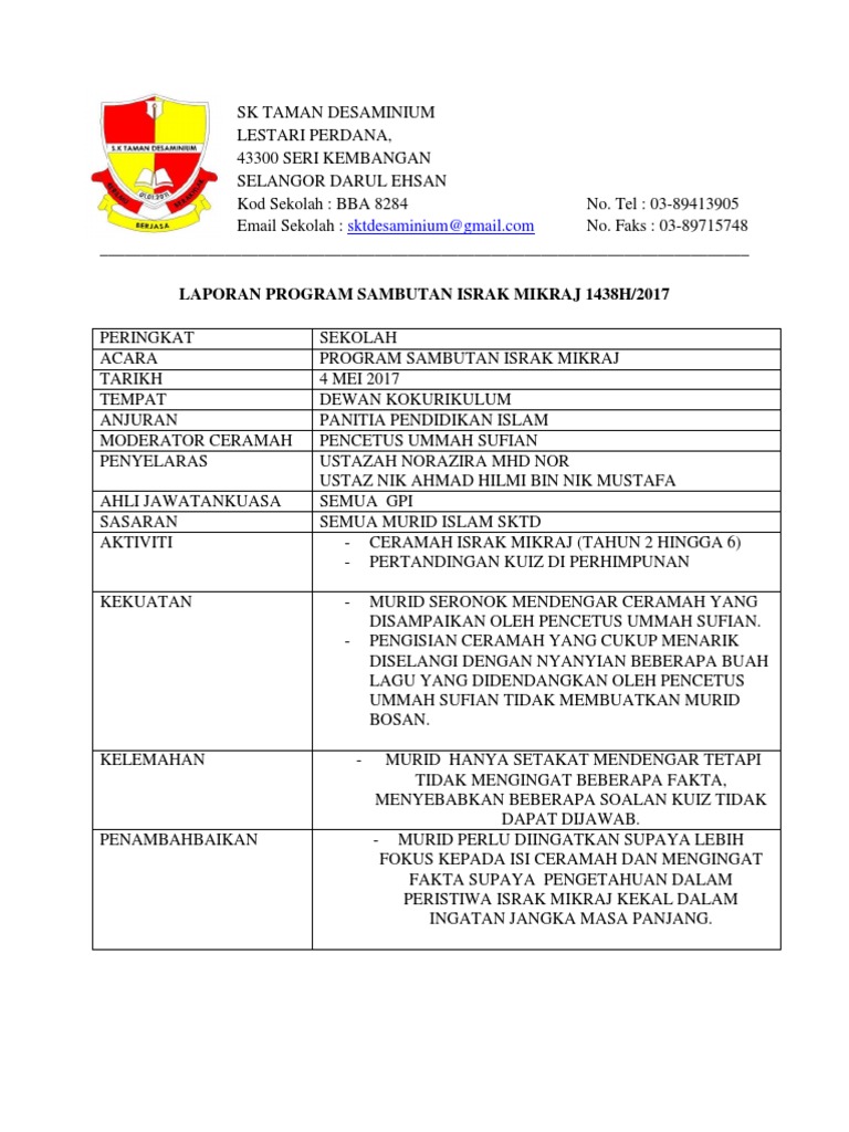 Laporan Sambutan Israk Dan Mikraj 2017 Copy