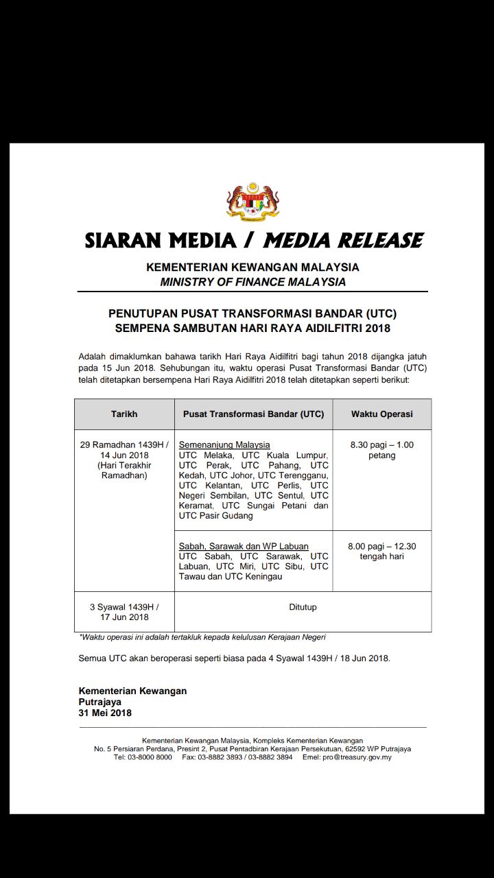 Bernama Tv On Twitter Penutupan Pusat Transformasi Bandar Utc Sempena Hari Raya Aidilfitri 2018 Malaysiabaharu