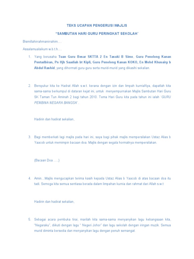 Contoh Teks Ucapan Pengacara Majlis Sempena Hari Guru In 2020 Teks Mathematics Guru