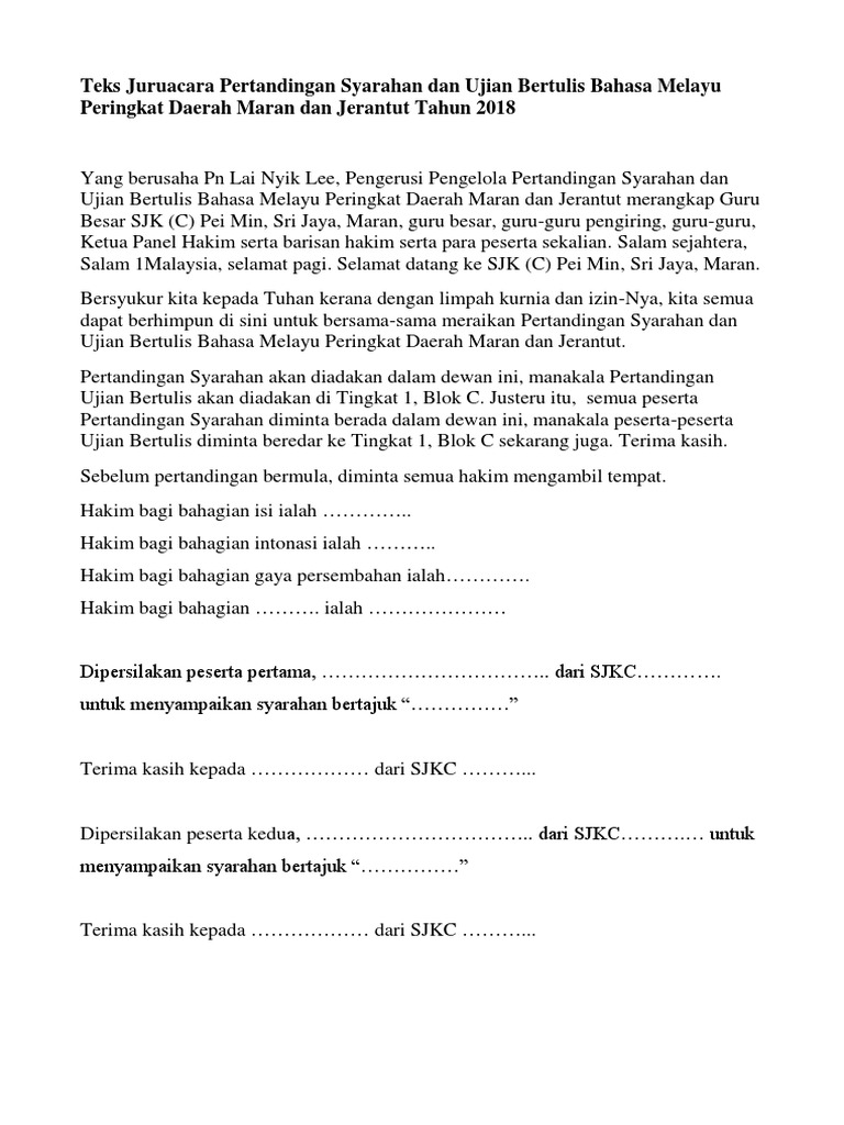 Teks Pertandingan Syarahan Sjkc Malim