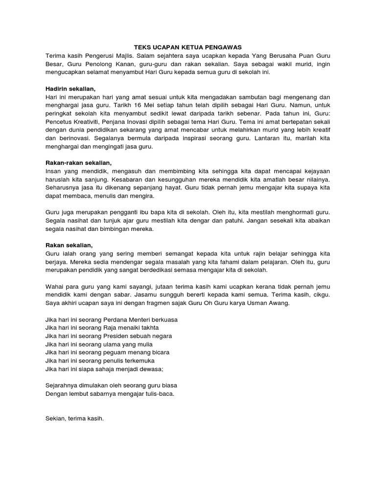 Kumpulan Unik Teks Ucapan Ketua Pengawas Sempena Hari Guru 2019 Informasi Masa Kini