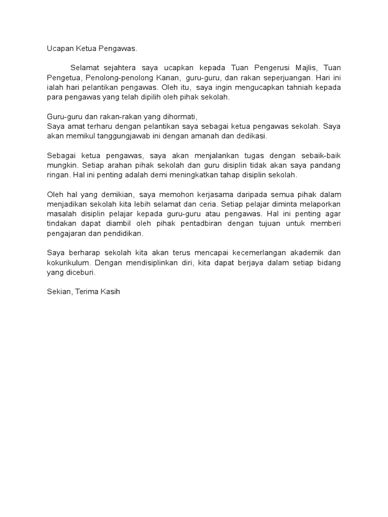 Teks Ucapan Ketua Pengawas Yang Baharu Dilantik
