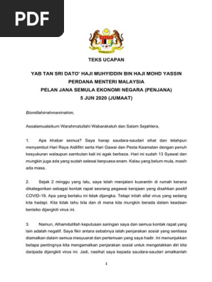 Majlis Keselamatan Negara Jabatan Perdana Menteri On Twitter Teks Ucapan Perdana Menteri Tan Sri Muhyiddin Yassin Pelan Jana Semula Ekonomi Negara Penjana 5 Jun 2020 Penjana Bersamamenjanaekonomi Https T Co Mogw4cpkx4
