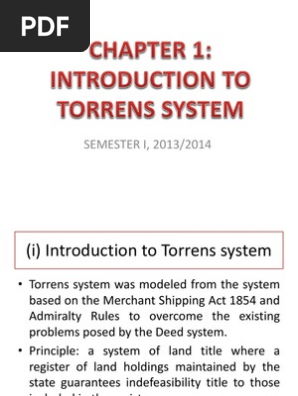 Chapter 1 Torrens System Property Law Civil Law Legal System