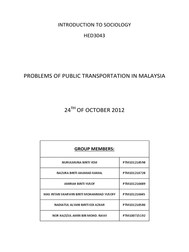 Public Transportation Issues And Recommendations In Combating Aversion To This Mode Of Transport Studocu