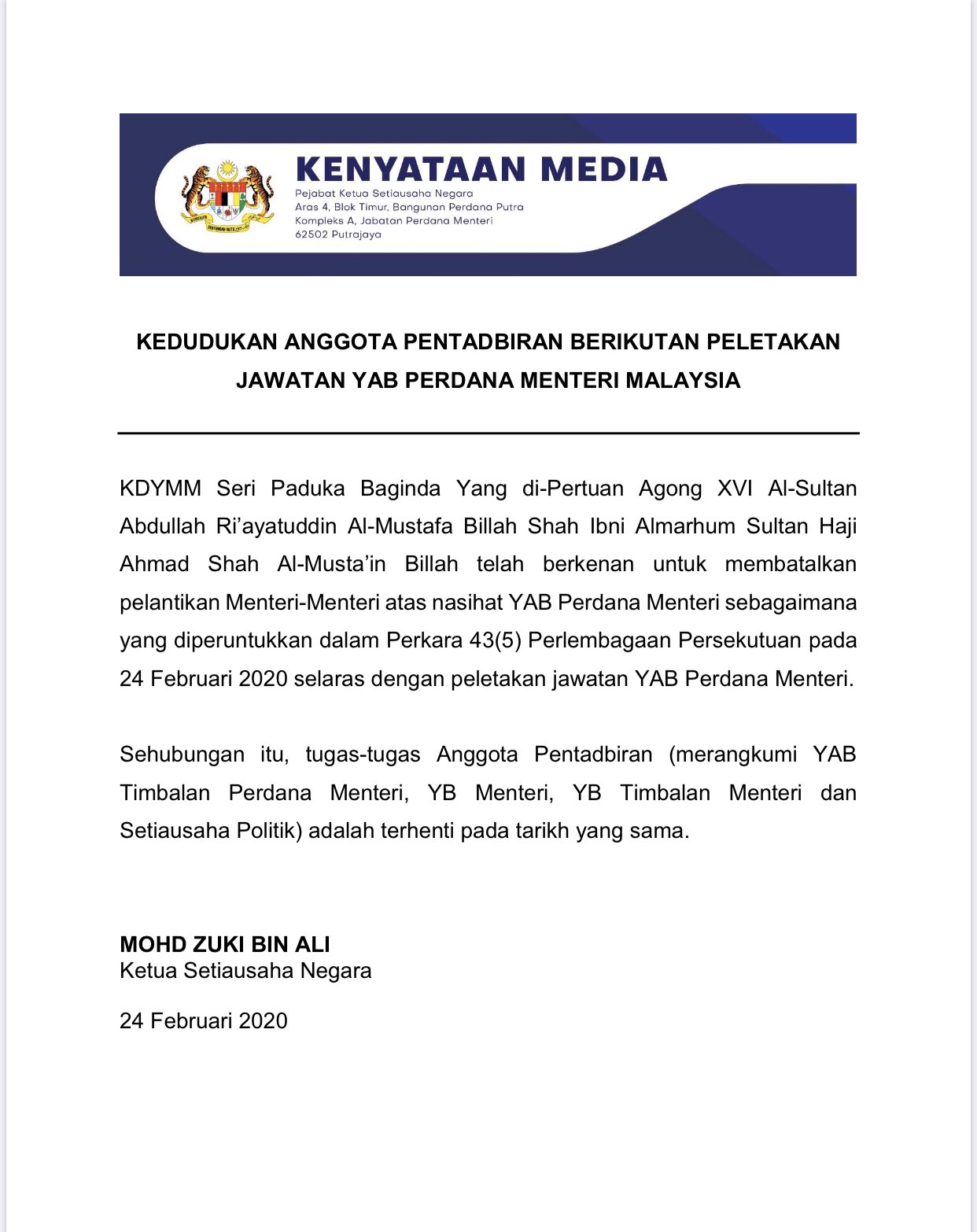 Mohd Zuki Ali On Twitter Kenyataan Media Mengenai Kedudukan Anggota Pentadbiran Berikutan Peletakan Jawatan Yab Perdana Menteri Malaysia