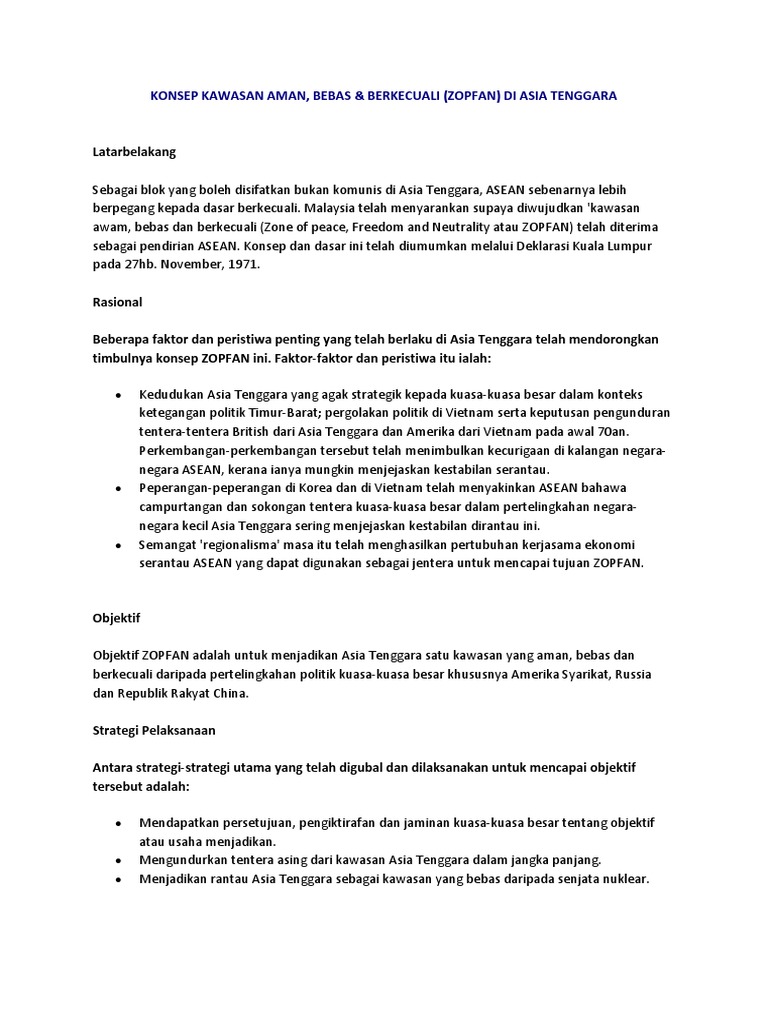 Melalui Deklarasi Kuala Lumpur Asean Menyatakan Bahwa Kawasan Asia Tenggara Sebagai Kawasan Zone Brainly Co Id