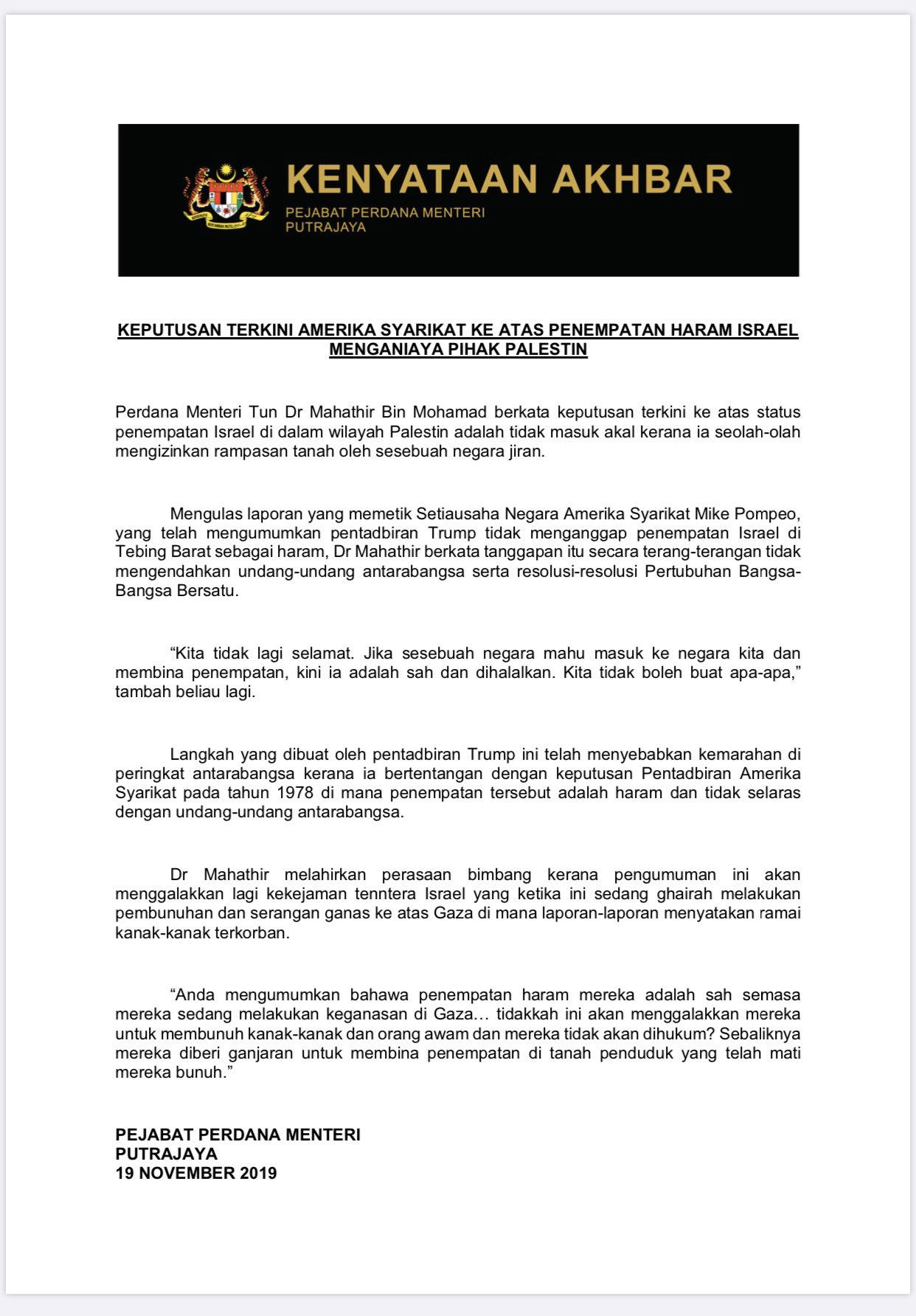Dr Mahathir Mohamad On Twitter Statement On Illegal Israeli Settlements We Are No Longer Safe If A Country Wants To Enter Our Country And Build Their Settlements That Is Legal We Cannot