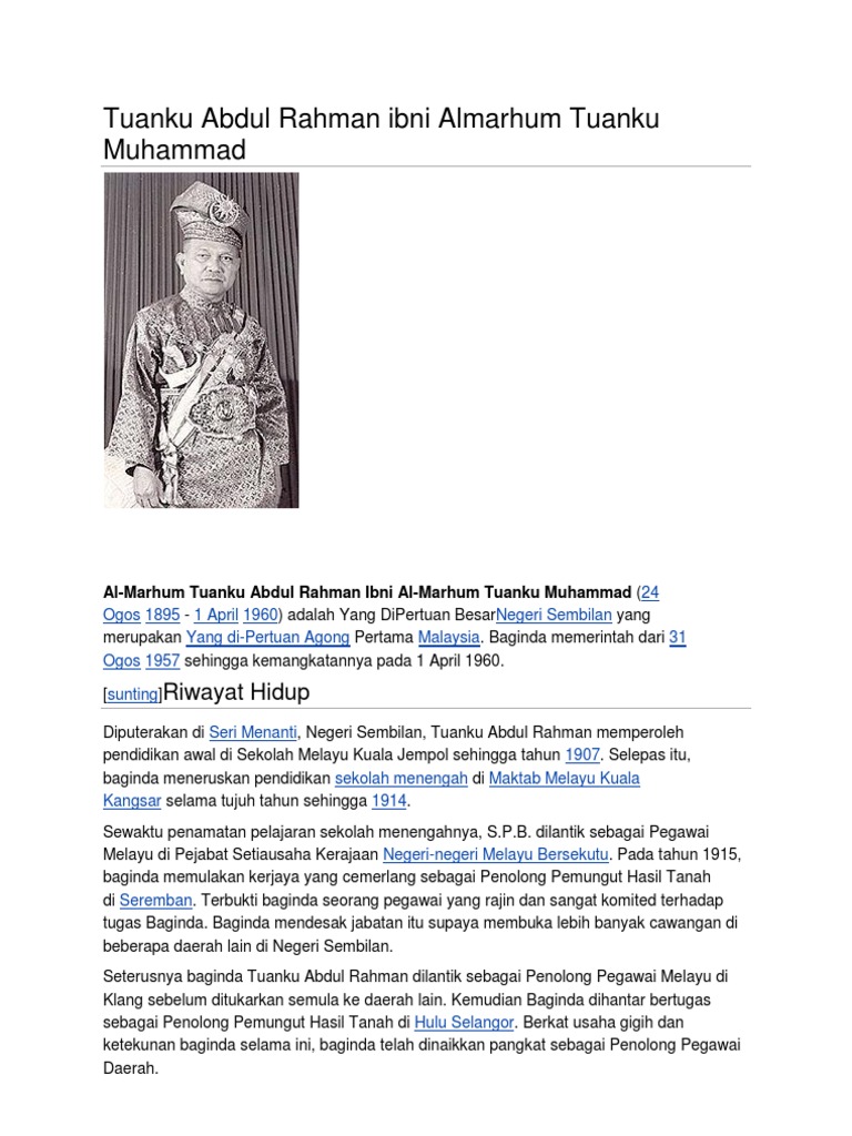 Aiman Mukhriz Nazlin A Twitter Almarhum Tuanku Abdul Rahman Ibni Al Marhum Tuanku Muhammad 1895 1960 Yang Di Pertuan Agong Pertama 1957 1960 Yang Di Pertuan Besar Negeri Sembilan 1933 1960 Https T Co 4le2lcb8yr
