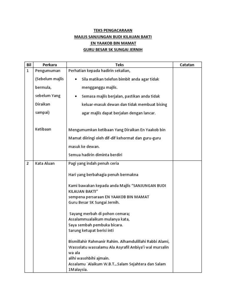Teks Pengacaraan Persaraan Guru Besar En Yaakob Bin Mamat