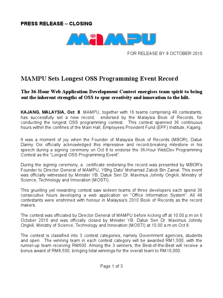 Press Release 36 Hour Oss Webdev Contest Closing Mampu Sets Longest Oss Programming Event Record Business