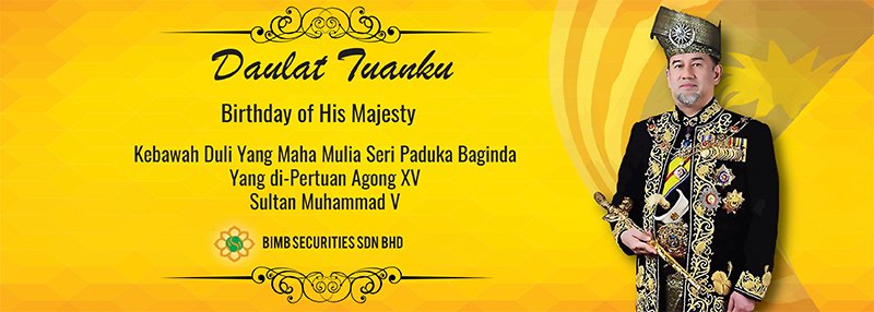 Bimb Securities On Twitter Agong S Birthday 9 September 2018 Wishing His Majesty Yang Di Pertuan Agong Xv Reign Peacefully With Good Health And Long Life Daulat Tuanku Agongbirthday Sultanmuhammadv Https T Co 034ug0tt51