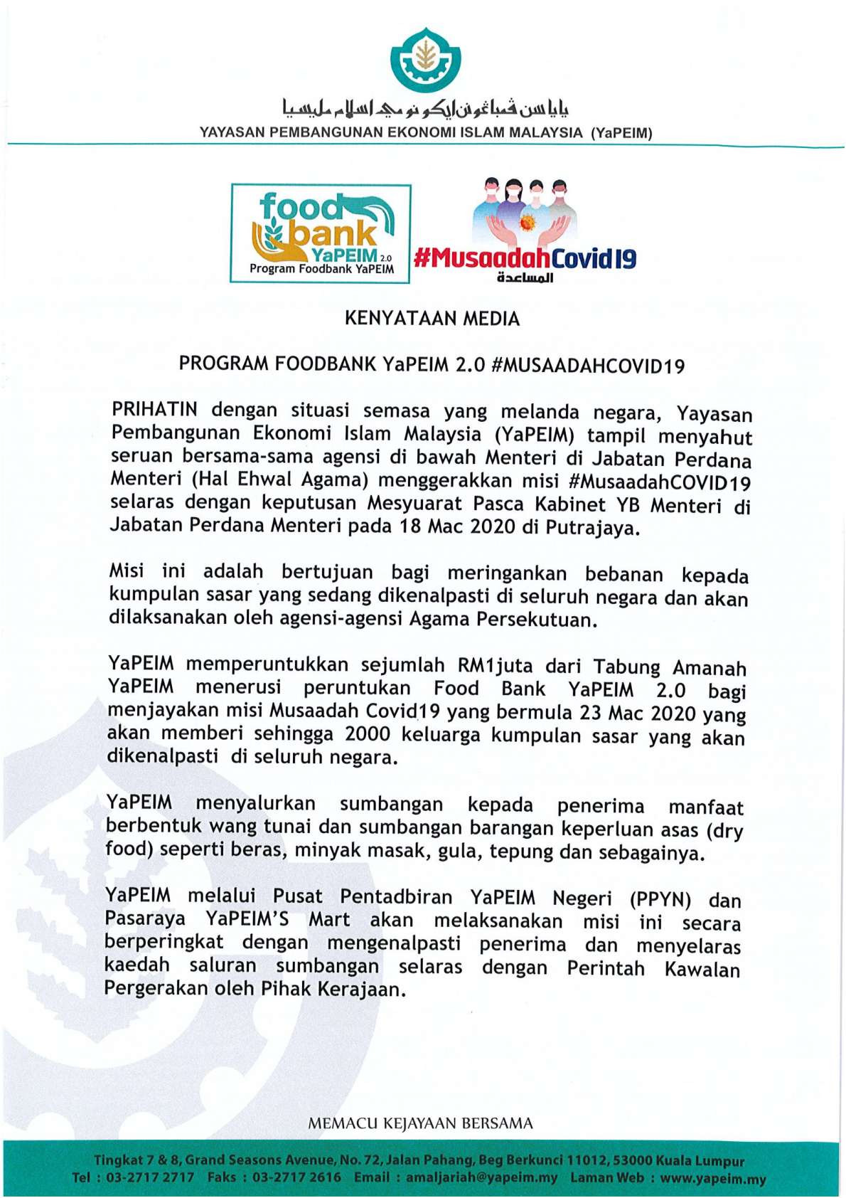 Yapeim On Twitter Kenyataan Media Program Foodbank Yapeim 2 0 Musaadahcovid19 Yapeim Memacukejayaanbersama Mac2020 Ingatkebajikaningatyapeim Covid19 Https T Co Wei2q76urk